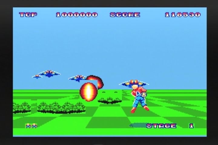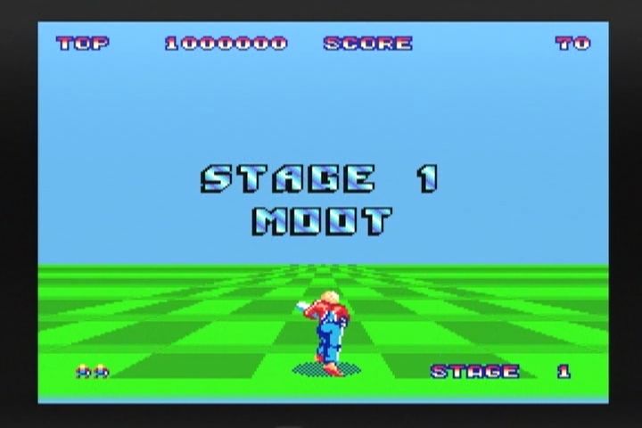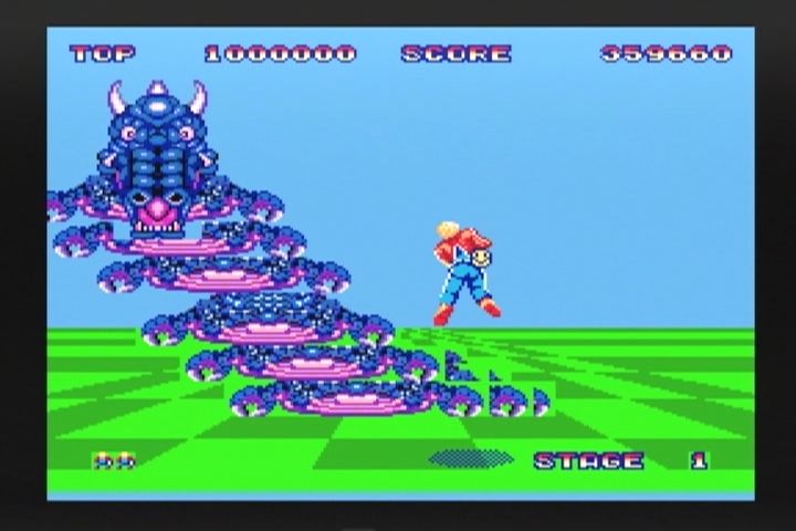 SPACE HARRIER ©SEGA 1986 機種:SEGAMarkⅢ/MASTER SYSTEM Wii(バーチャルコンソール) PS2(SEGAAGES2500 Vol20スペースハリアーⅡC.C) ジャンル:3Dシューティング 1986年発売(PS2は2005年、Wiiは2008年) 一時代を築いたセガの体感ゲーム。その第2弾であるスペースハリアー。 最初は移植不可能と言われたマーク3に堂々登場。 2Mという当時としては大容量で移植されました。 勿論、ハードの性能差から完全移植とは行きませんでしたが スペースハリアーが家でプレイできるというだけで満足でした。 ※今回のプレイではPS2版を使用しています。 だって、コントローラーから一時停止できるんだもん。