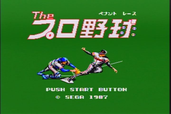 ザ・プロ野球 ペナントレース ©1987 SEGA 機種:SEGAMarkⅢ/MASTER SYSTEM ジャンル:スポーツ(野球) 1987年発売 グレートベースボール以来の野球ゲーム。 プロ野球がテーマ。今度はメガロムで登場です。 電源を入れると選手が滑り込んできます。 そして、セーフかアウトの声がかかります。 運試しに使えるかも知れません。 各チームの強さは発売当時の1987年当時の強さが反映されています。 このゲーム、クリアするまでは9試合勝たなければいけません。 セーブもパスワードもコンティニューもないのに。